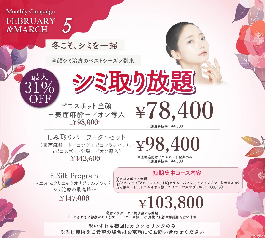 また、保険が適用される皮膚疾患に対する対症治療を施す「一般皮膚科」とも異なり、「美容皮膚科」エルムクリニックでは、皮膚の構造やメカニズムを熟知した美容皮膚科医が、高い美的効果を出す保険適用外の薬や美容医療で、肌の見た目の美的な質感にこだわった治療で様々なお肌の悩みを解決します。